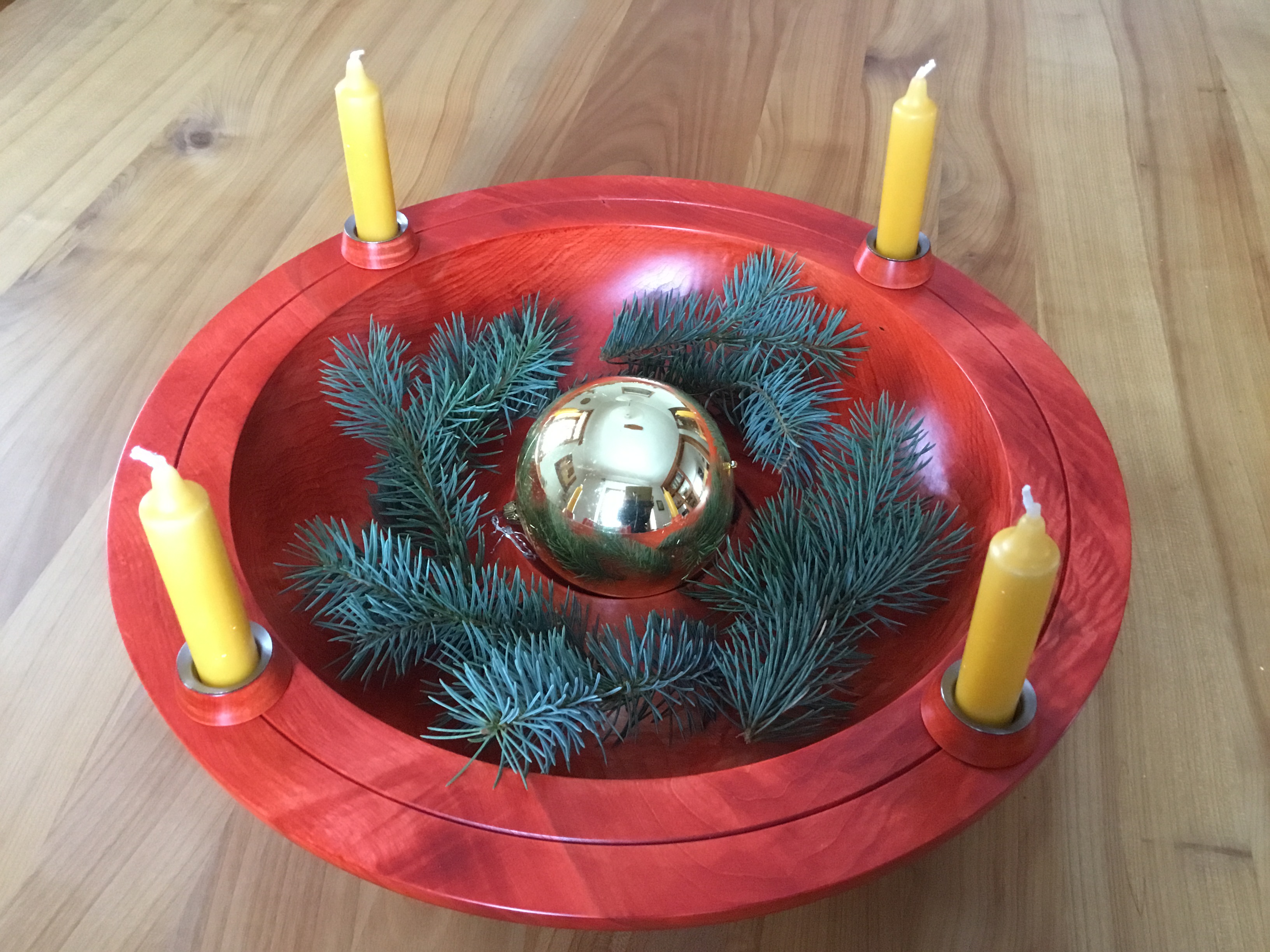 Adventsschale aus Ahorn, gebeizt; Durchmesser 42cm